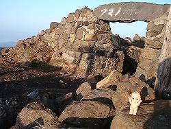 午前5時、 山頂付近は快晴です(^-^) 謎の石の建造物を発見。 昔の非難小屋でしょうか。 石舞台古墳のようです。 |